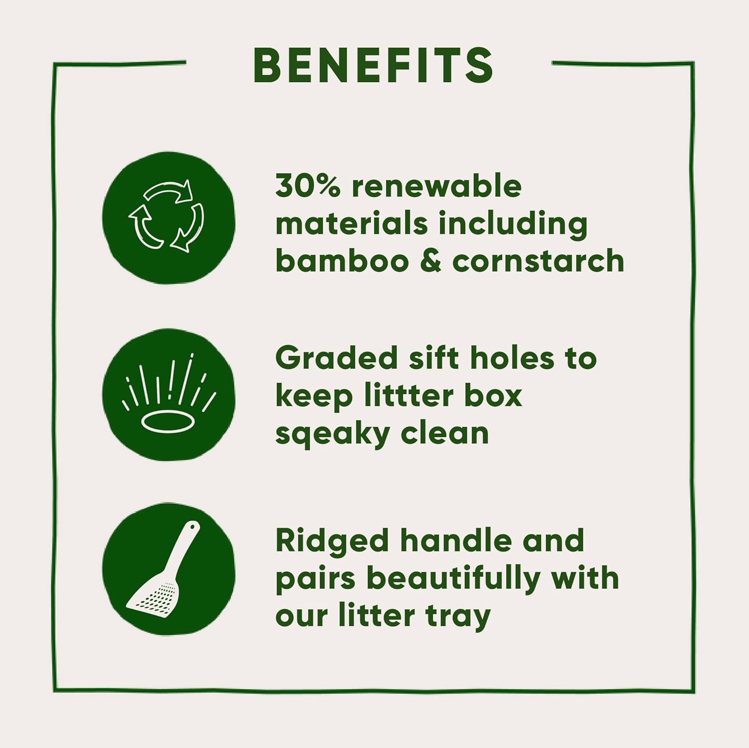 Trous de tamisage gradués pour un nettoyage facile de la litière