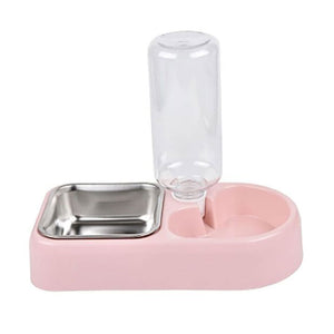 Gamelles pour chien et chat avec gourde automatique : gamelle 2 en 1. Un bol en acier inoxydable pour la nourriture, un bol en plastique avec bouteille d'eau automatique. Il remplira l'eau automatiquement dans le plat et gardera l'eau propre, que vous soyez à la maison ou non.